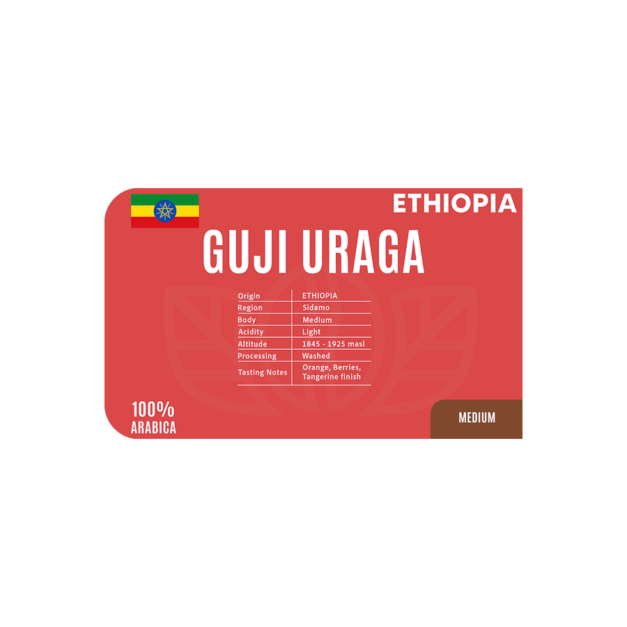 Grown at 1,845-1,925m in Guji's Uraga region, this washed coffee dazzles with floral jasmine aromas and vibrant peach nectar flavors. Bright lemon zest acidity balances a velvety body and brown sugar sweetness, finishing with delicate floral notes. Perfect for V60 or Aeropress. Pair with fruit tarts.